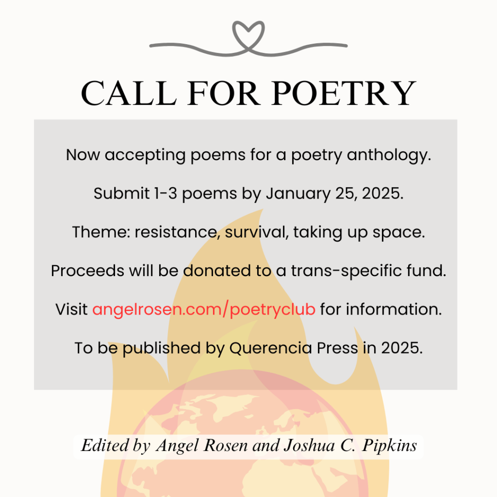 Email Angel at poetryclubafp@gmail.com with any questions, comments, offers of help (proofreaders needed), title suggestions, and recommendations for a charity to donate to.